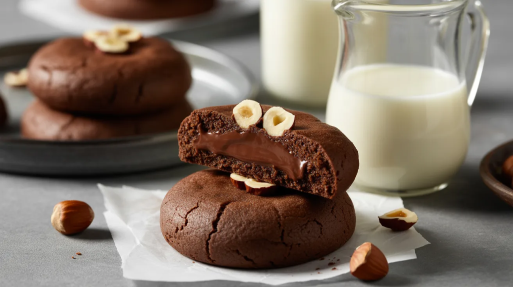 These are for people who want that shiny, crackly brownie top—without butter. The cookie base is cocoa-rich and fudgy, and the hazelnuts give it that classic chocolate-hazelnut vibe. The texture is soft and almost truffle-like inside, making them feel extra indulgent. If you love brownie edges and centers at the same time, this cookie idea is your dream.