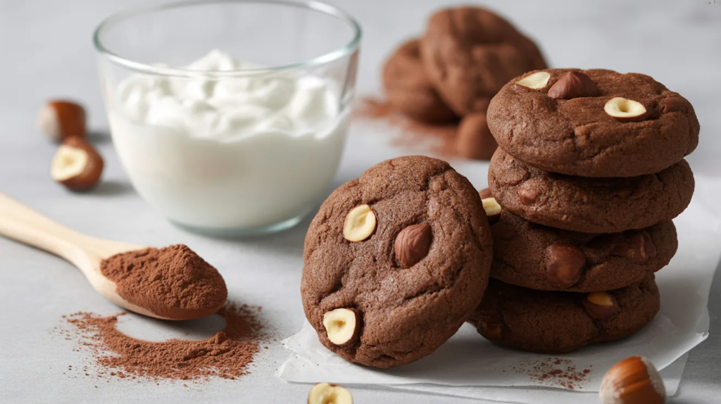 Greek yogurt is a secret weapon for butter-free cookies because it adds moisture and structure while keeping the texture chewy. These cookies bake up thick, with a soft bite and a rich cocoa base that tastes like a brownie-meets-cookie moment. The hazelnuts add crunch and make them feel more “bakery,” especially if you chop them into uneven pieces for texture.