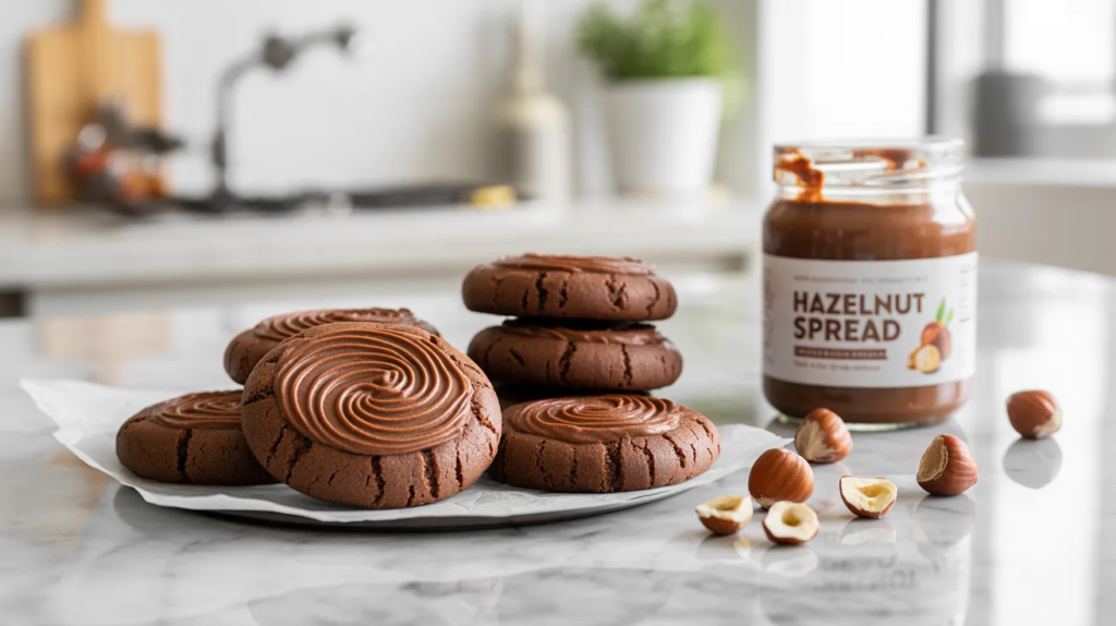 For best swirls, spoon dollops of hazelnut spread on top of dough balls and lightly fold with a toothpick. Add chopped toasted hazelnuts for crunch and a bakery finish. These are perfect for holiday trays or when you want cookies that look “wow” with minimal effort.