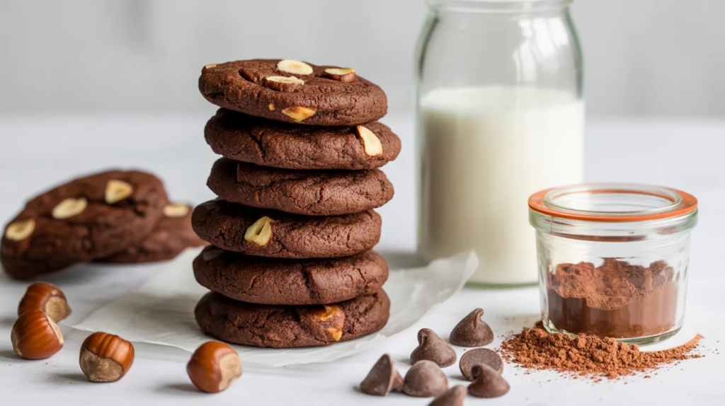 If you want cookies that double as a snack, add a protein boost with ingredients like protein powder, nut butter, or Greek yogurt. The key is keeping the chocolate flavor strong so they still taste like a treat, while hazelnuts give crunch and make the texture more satisfying. These are great for busy mornings, post-workout cravings, or an afternoon energy bite that feels indulgent.