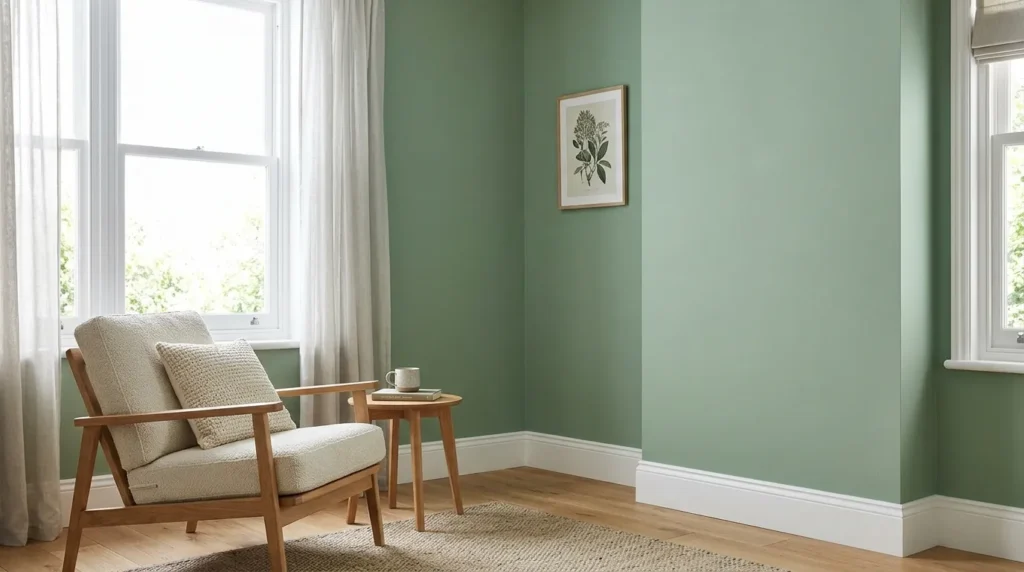 5. Sage Green Walls with Minimalist Décor