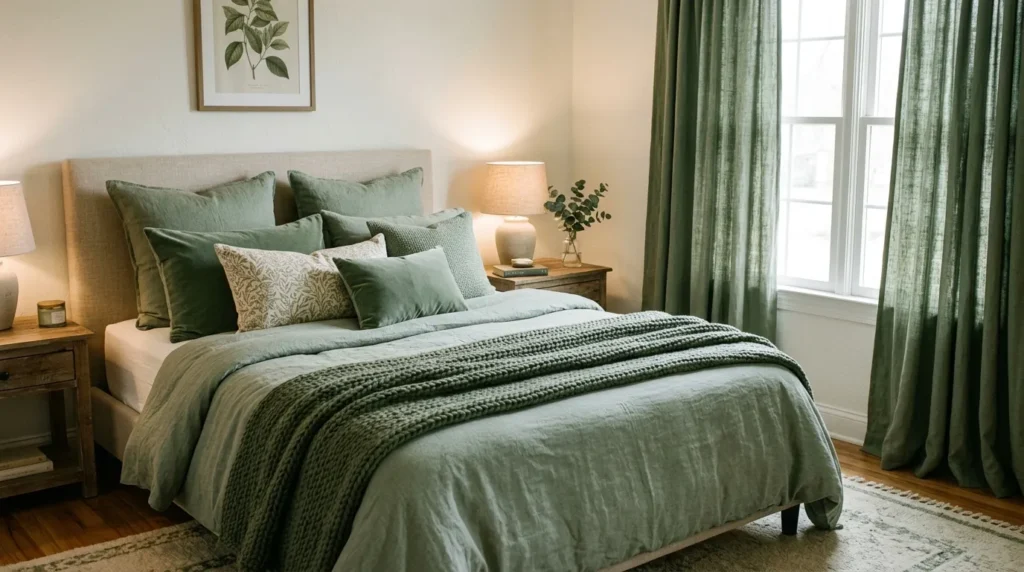 6. Layered Sage Green Textiles