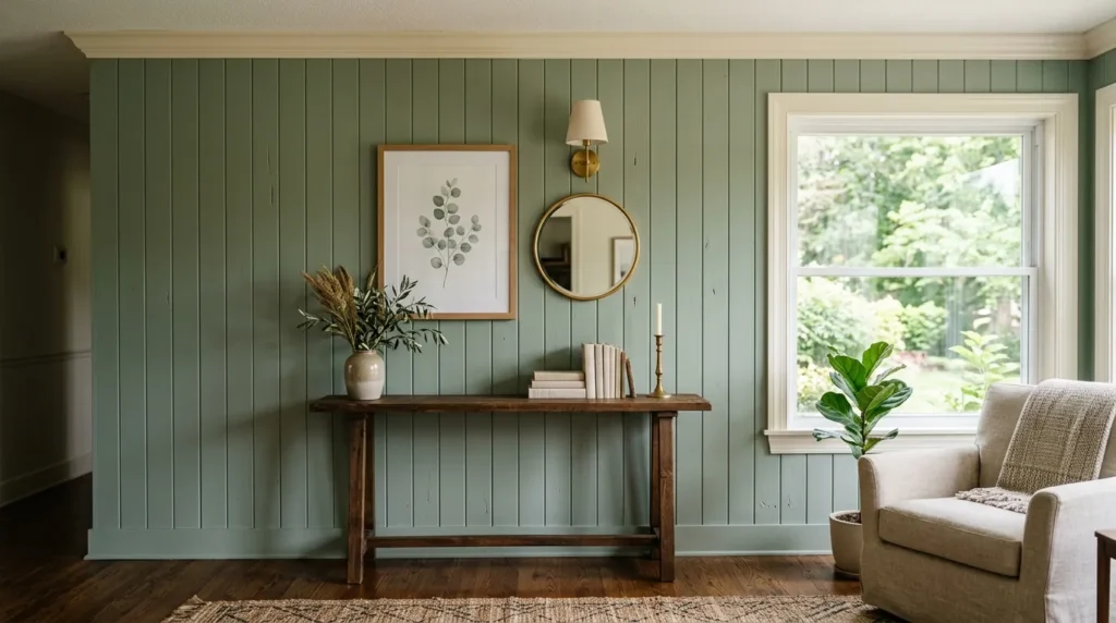 20. Sage Green Accent Wall with Wainscoting