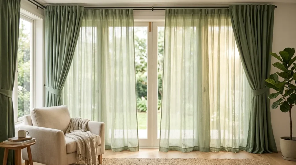 18. Layered Sage Green Window Treatments