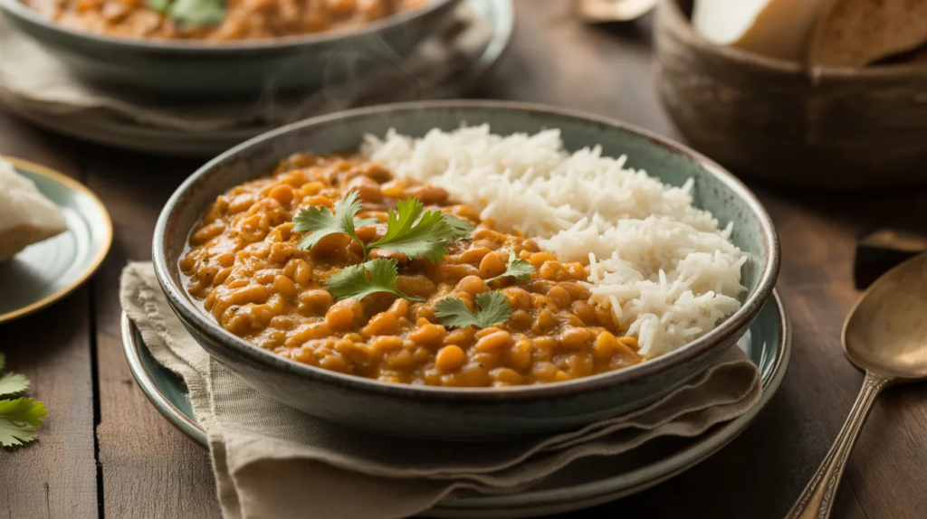 Serve it with rice, naan, or even toast for a quick dinner. It also prepares beautifully because the lentils thicken overnight and taste even better the next day. Add a splash of water when reheating to bring back the creamy texture, then top with herbs for a fresh finish.