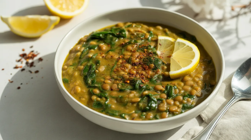 2) Spinach Coconut Lentil Curry (Iron-Boost Bowl)