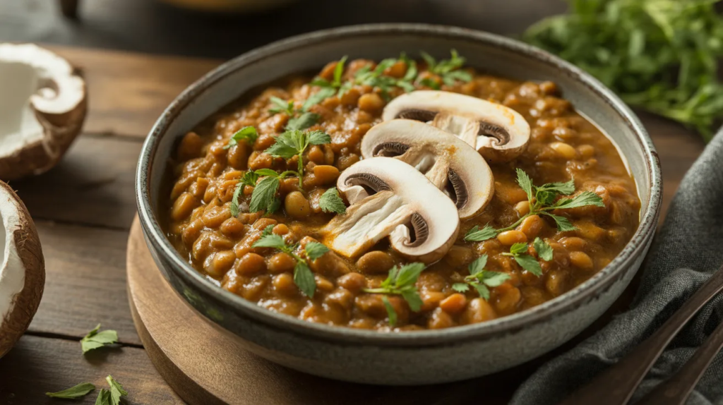 Mushrooms bring a deep savory flavor that makes vegan curry taste extra “meaty” without any meat. Sauté them first until golden so they release flavor, then simmer with lentils and coconut milk. Add soy sauce or a pinch of miso for extra umami, and keep the spices simple so the mushroom flavor shines.