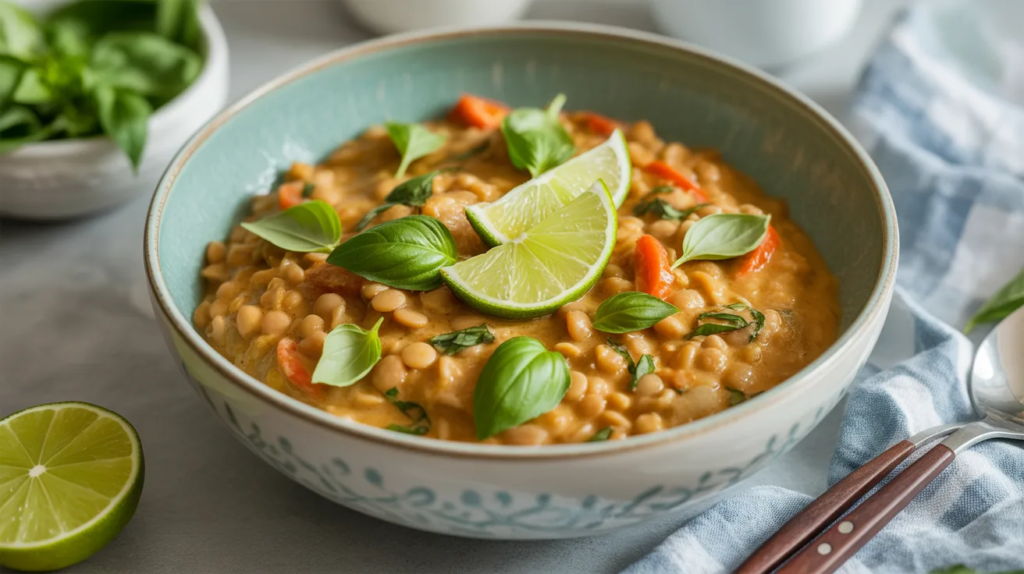 8) Thai-Style Coconut Lentil Curry (Lime + Basil)