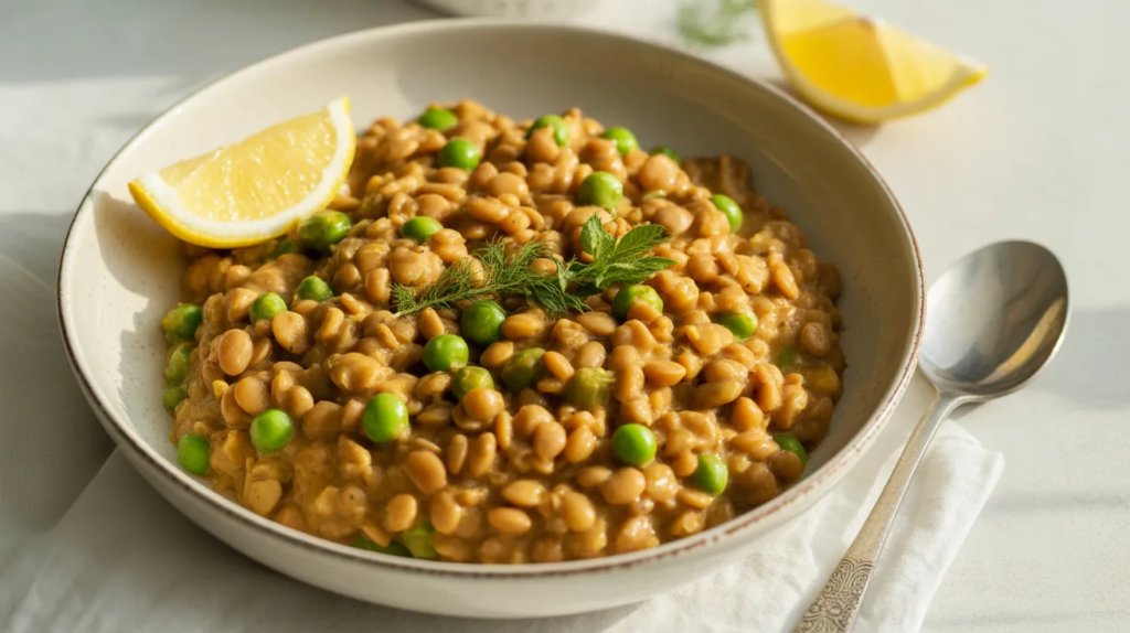 Peas add a fresh pop of color and sweetness, making the curry feel lighter. Since peas cook quickly, you add them at the end, keeping them bright and tender. Coconut milk makes the sauce creamy, and lentils give you protein and fiber—exactly what you want in an easy vegan dinner.