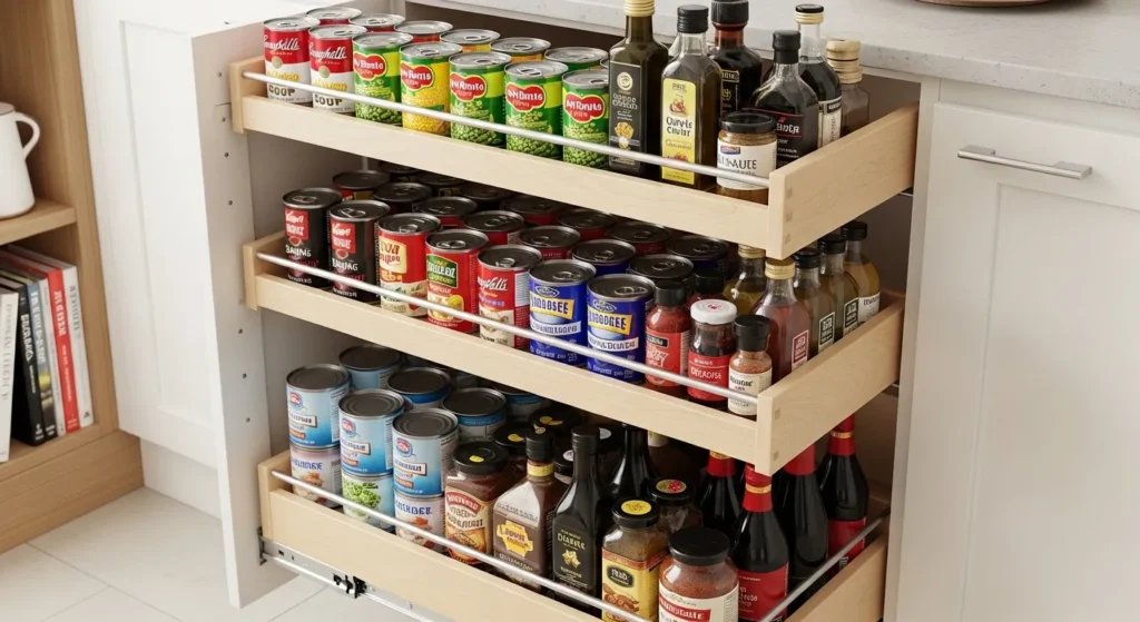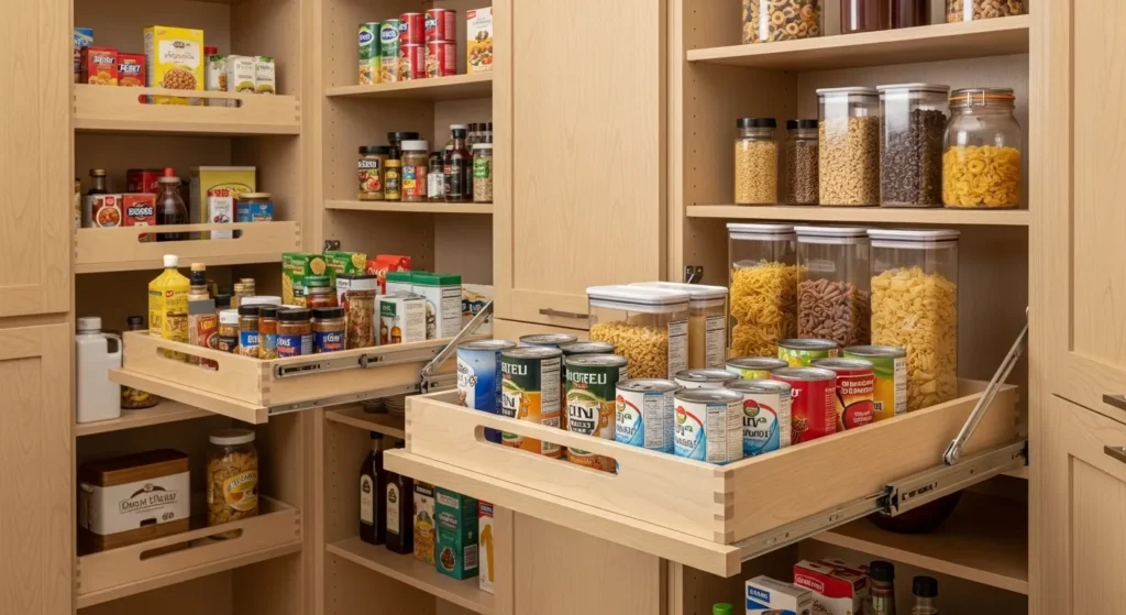 Content: Pull-out shelves are an ideal solution for small kitchen pantries as they maximize accessibility. With their sliding design, you can easily reach items stored in the back without disturbing the ones at the front. This makes the pantry more organized and efficient, saving time while preparing meals. The ability to store jars, cans, and other packaged goods on these shelves helps in maintaining a clutter-free space, which is essential for small kitchens. In addition to providing better visibility and access, pull-out shelves also allow for easy organization. You can customize them with adjustable settings to store larger or irregular items, creating a functional layout. These shelves provide a sleek, tidy look while adding a touch of convenience, making them perfect for maximizing small kitchen pantry ideas.