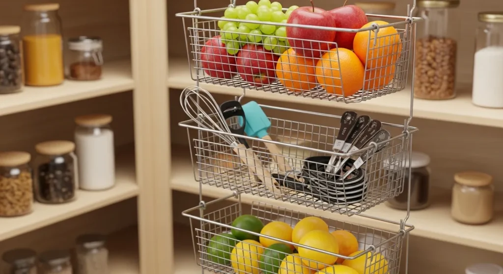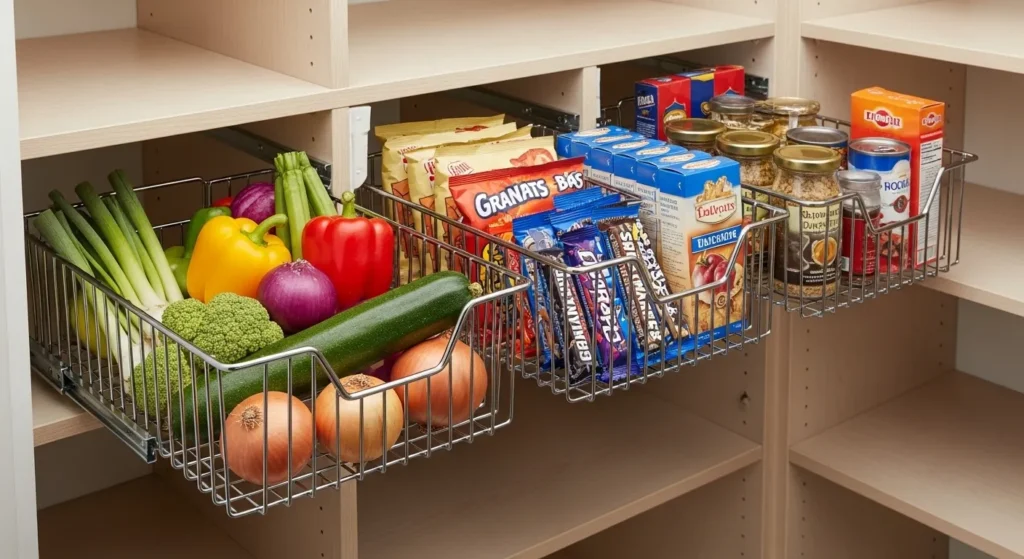 Content: Sliding baskets are a great addition to small kitchen pantries as they make accessing deep shelves more manageable. These baskets slide out effortlessly, allowing you to reach the items at the back without having to move anything else. Ideal for storing vegetables, snacks, or packaged goods, sliding baskets help maximize space while keeping things easily accessible. The wire design ensures visibility and air circulation, reducing the risk of spoilage and ensuring that everything stays fresh. In addition to their practical functionality, sliding baskets also offer flexibility. You can rearrange them as needed to accommodate different pantry items, ensuring that your storage system remains adaptable over time. They provide a simple solution for keeping your small kitchen pantry organized, tidy, and user-friendly.