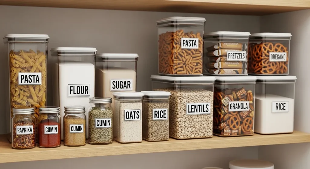 Content: Labeled containers are a simple yet effective solution for organizing your small kitchen pantry. By categorizing items into uniform containers and labeling them clearly, you make it easier to find ingredients quickly. Whether you’re storing grains, pasta, or baking supplies, labeled containers reduce visual clutter and provide a streamlined, cohesive look. This approach not only enhances accessibility but also encourages better organization. The use of clear containers ensures that you can easily see the contents, helping to avoid purchasing duplicate items. Furthermore, this method keeps pantry items sealed, which helps maintain their freshness. Overall, labeled containers contribute to a visually pleasing and highly functional pantry that makes meal prep much more convenient.