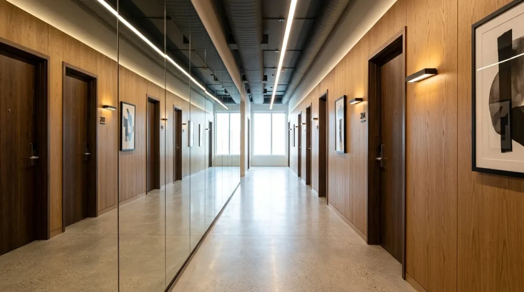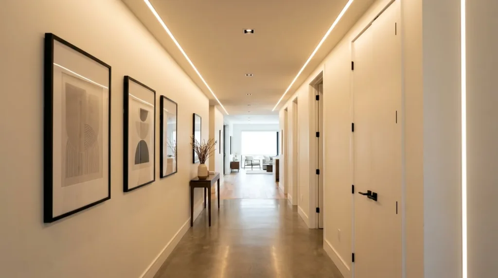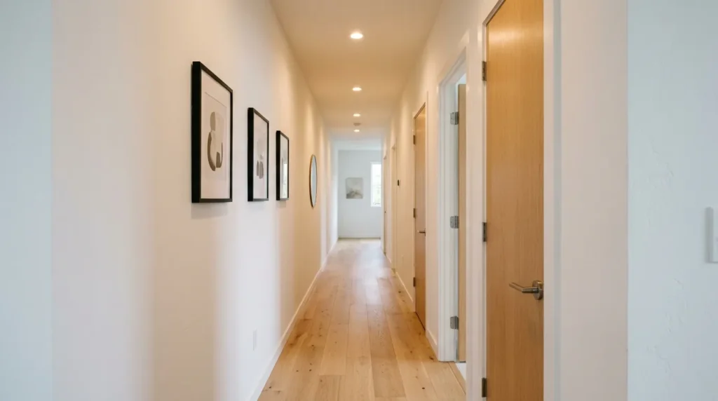 Paragraph 2: Coordinating with flooring, wall color, and minimal décor maintains harmony. Lighting transforms corridors into modern, inviting spaces.