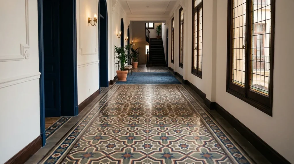 Paragraph 2: Coordinating with neutral walls and minimalist décor balances bold patterns. Flooring transforms a simple corridor into a stylish, modern passage.