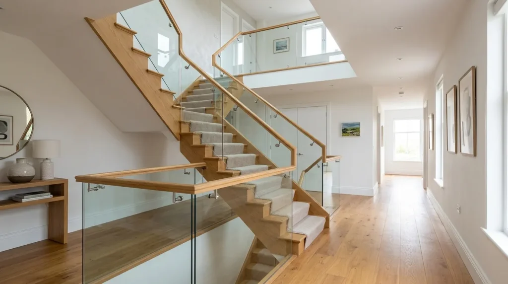 Paragraph 1: Glass railings provide transparency, light flow, and a contemporary touch. They enhance the open feeling of corridors connected to staircases.