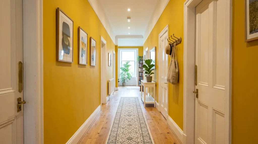 Paragraph 2: Coordinating with neutral décor and subtle lighting maintains balance. Colorful walls make even narrow hallways feel dynamic and stylish.