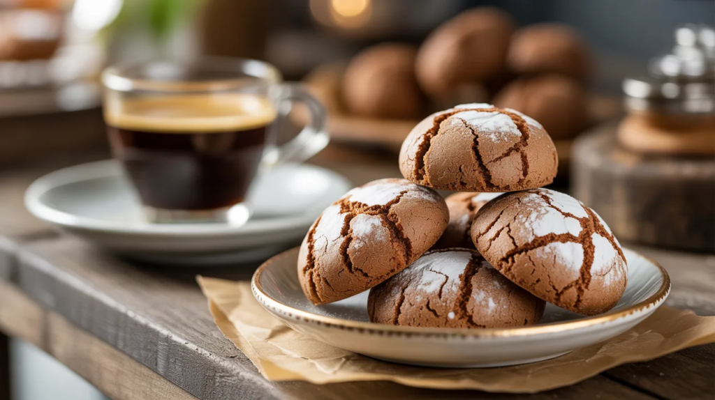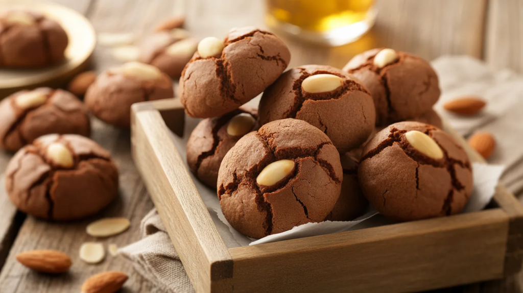 If you love coffee and chocolate together, mocha amaretti are the perfect bite-size treat. Add 1–2 teaspoons instant espresso powder (or strong brewed espresso reduced) into your aquafaba mixture before folding in almond flour and cocoa. The espresso intensifies the chocolate flavor and gives a subtle roasted note that feels bakery-level. Roll, sugar-coat, and bake until the tops look dry and beautifully fissured.