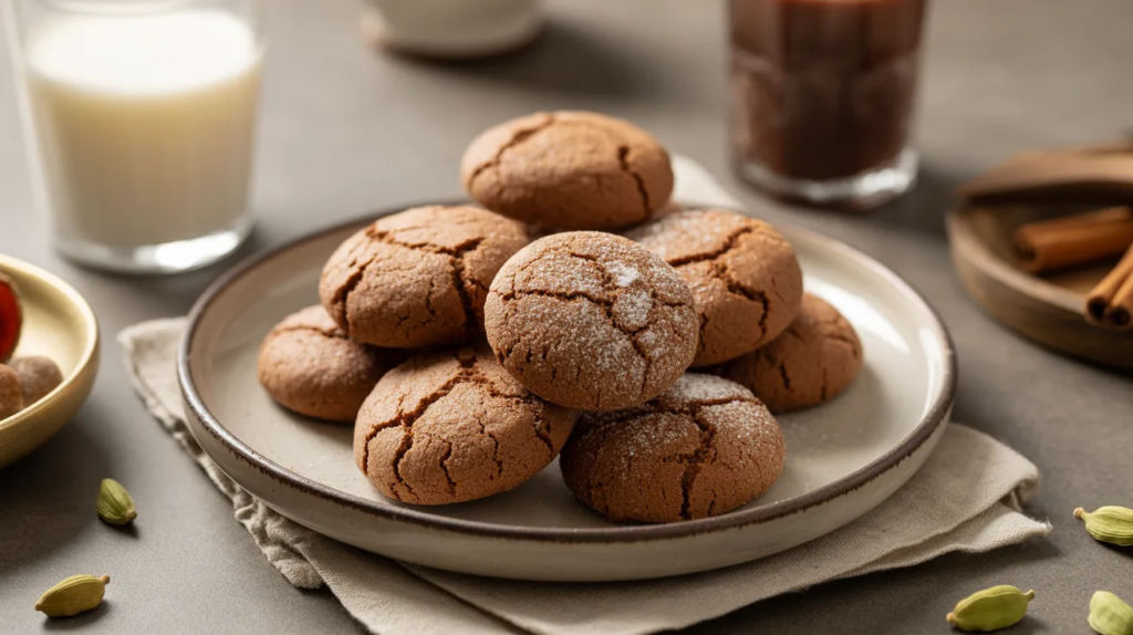 Cardamom can be bold, so keep it balanced—think “soft perfume,” not “spice overload.” If you want extra depth, add a tiny pinch of cinnamon too. These cookies pair beautifully with chai, black tea, or a creamy oat milk latte. For presentation, dust a little cardamom-sugar over the cooled cookies right before serving. Store airtight and away from heat so the spice aroma stays fresh.