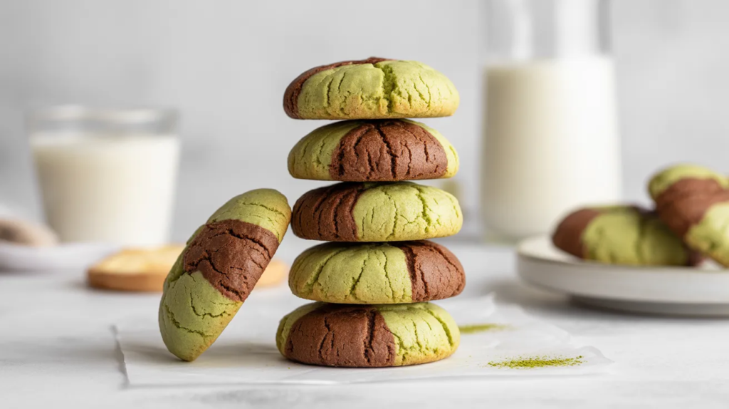 The result is chewy, fragrant, and beautifully patterned. Matcha adds a grassy, slightly bitter edge that balances the sweet chocolate. Use a good-quality matcha so the flavor stays smooth, not fishy. These cookies photograph incredibly well because the cracks show both colors. Let them cool fully before handling so the marble pattern stays crisp. Store airtight and keep away from strong light to preserve matcha’s color.