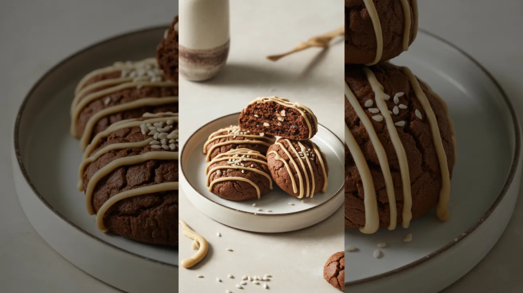 Finish with a light tahini drizzle and a sprinkle of toasted sesame seeds for a gorgeous look and extra crunch. If you want a stronger sesame flavor, use toasted tahini or add a pinch of sesame salt. These cookies are great for people who don’t love overly sweet desserts. Store airtight, and keep parchment between layers so the drizzle stays neat. Serve with coffee for a perfect “grown-up treat” moment.