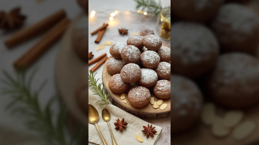 Peppermint turns chocolate amaretti into a holiday favorite. Add a small amount of peppermint extract to the whipped aquafaba—start tiny, because it’s strong. Fold in almond flour, cocoa, and a pinch of salt, then roll and coat in powdered sugar. Before baking, sprinkle crushed vegan peppermint candies or peppermint sugar on top for sparkle and a cool, minty crunch.