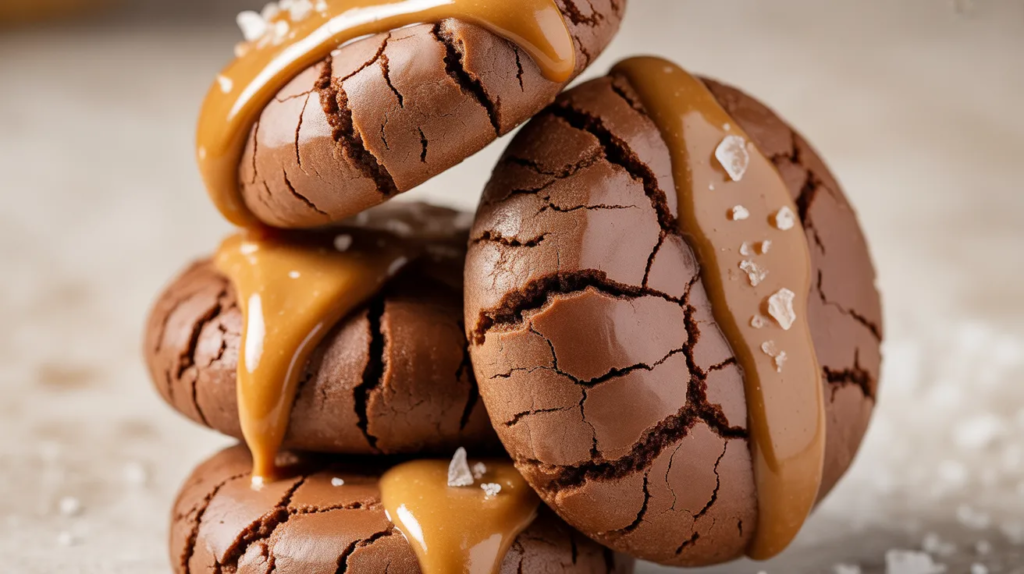 Salted caramel makes these amaretti taste like a candy shop dessert. Bake your chocolate almond flour amaretti as usual—crackly tops, chewy centers—then add the caramel magic after cooling. Drizzle with vegan caramel sauce (store-bought or homemade) and finish with a pinch of flaky sea salt. The sweet-salty contrast makes the cocoa pop and turns a simple cookie into something that feels totally indulgent.