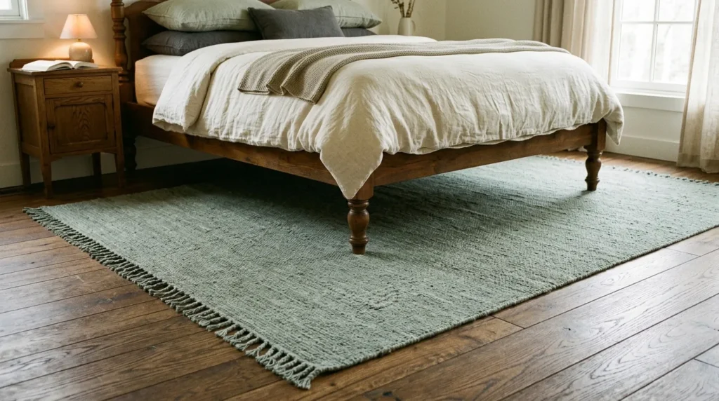 Paragraph 2: Coordinating with bedding, furniture, and décor maintains balance. Rugs enhance serenity while reinforcing the natural aesthetic of the bedroom.