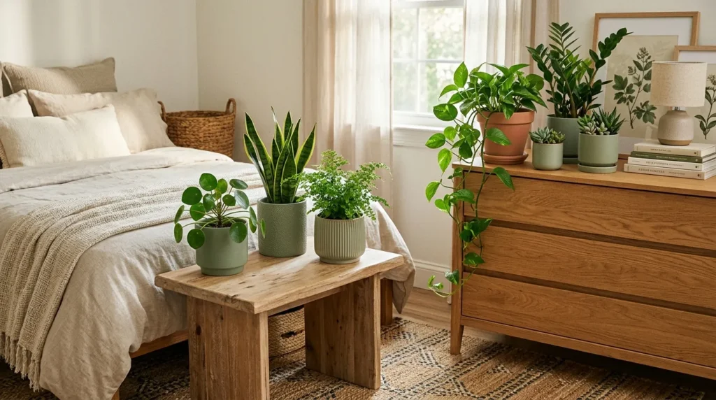 Paragraph 1: Plants in green or sage tones enhance natural textures and tranquility. They harmonize with wood accents for a cohesive look.
