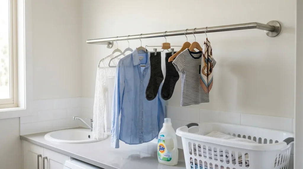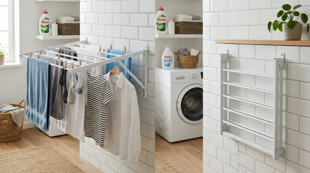 Paragraph 2: Combining hooks with a minimalist design, baskets, and wall shelves enhances both functionality and style. Hanging solutions simplify laundry workflow while maintaining organization.