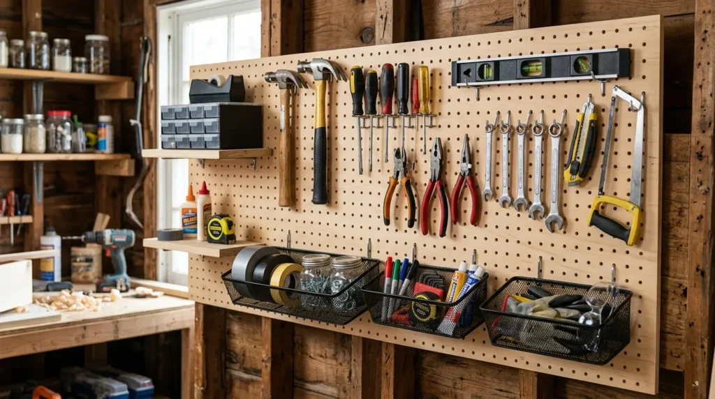 Paragraph 1: Pegboards allow flexible and accessible storage. Hooks and shelves can hold cleaning products, brushes, or laundry tools efficiently.