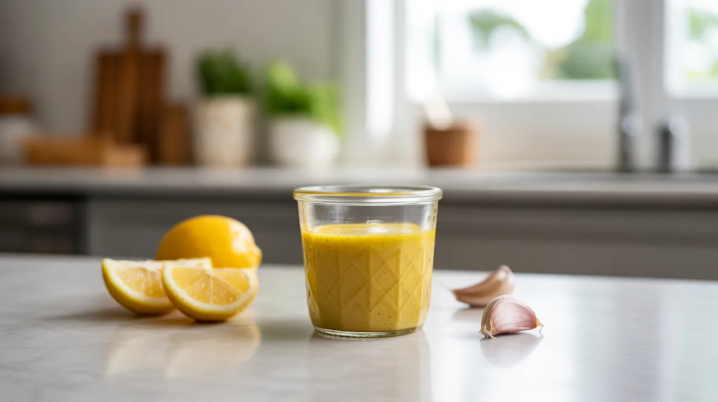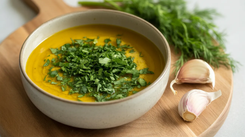 If garlic doesn’t suit you, this version keeps the flavor without it. Use lemon, turmeric, a pinch of cumin, and herbs for depth. It’s perfect for anti-inflammatory meals when you want something soothing and gentle. The goal is clean flavor: bright, creamy, and easy to digest.