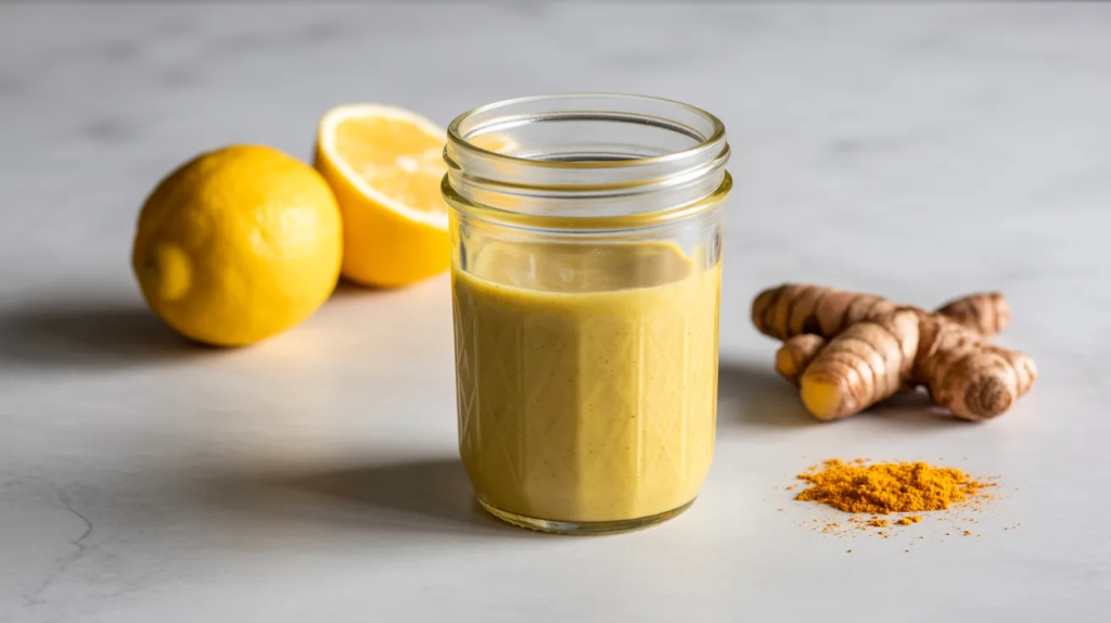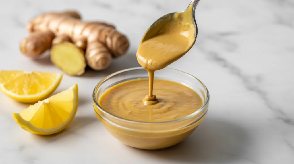 This version adds fresh ginger for a sharper, brighter finish that feels energizing. It’s great for anti-inflammatory plates because ginger and turmeric pair well with citrus and tahini’s richness. Grate ginger finely (or use ginger paste) so the flavor blends smoothly instead of leaving spicy chunks.