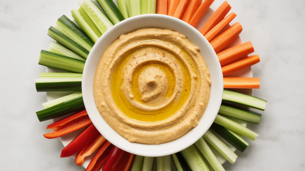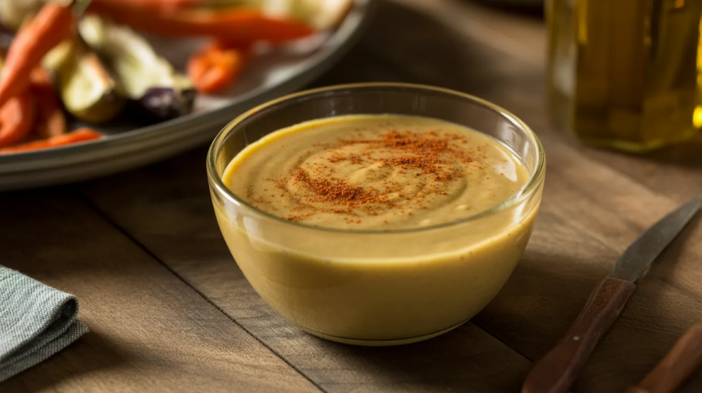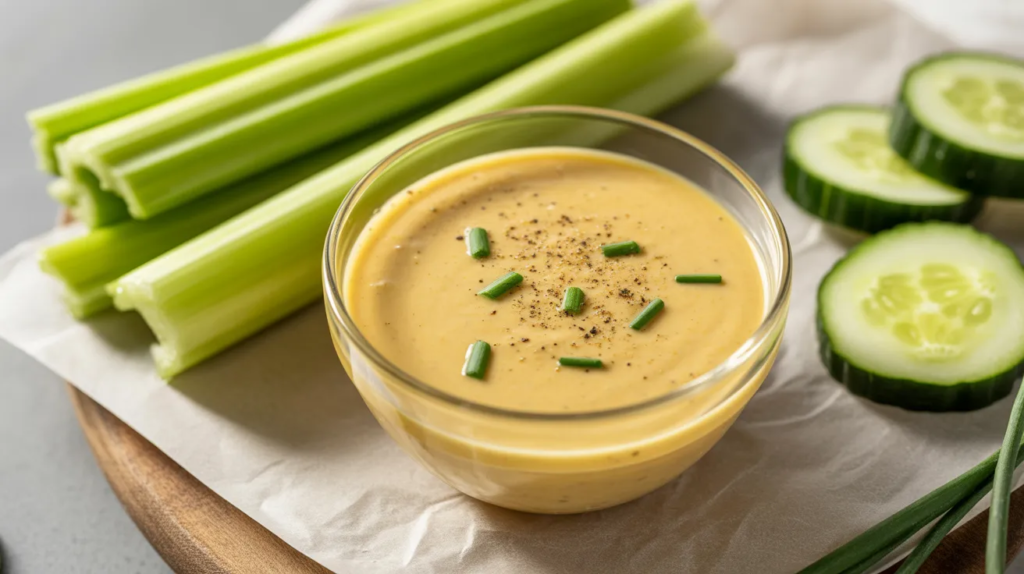 Serve it with cucumbers, carrots, bell peppers, or whole-grain crackers. It also works as a spread in sandwiches and wraps. If you need it pourable later, add water to half the batch and keep the rest as a dip. This gives you two uses from one simple recipe idea.