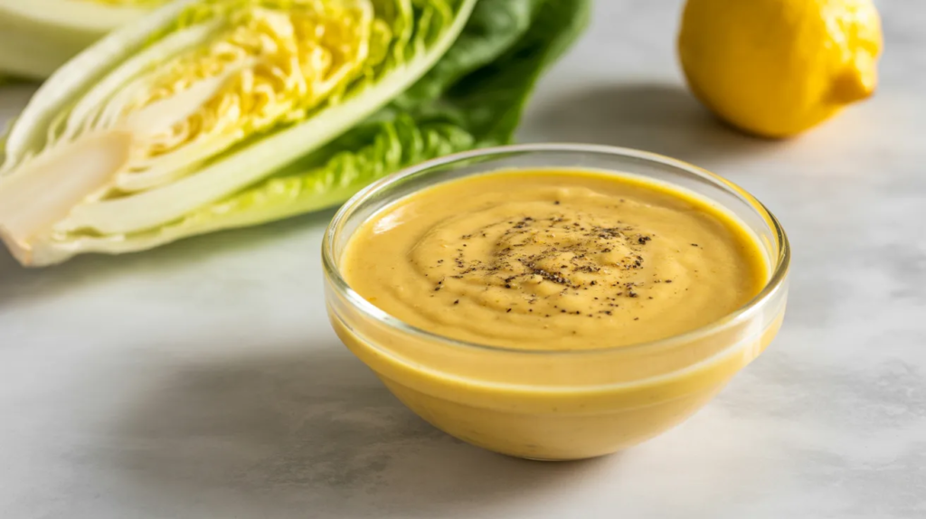 Drizzle it over romaine, crouton alternatives, and grilled chicken. It also works on roasted cauliflower “steaks.” If you want a more cheesy taste, add nutritional yeast. Keep the texture slightly thick so it clings to lettuce like Caesar dressing, and thin with water only if needed.