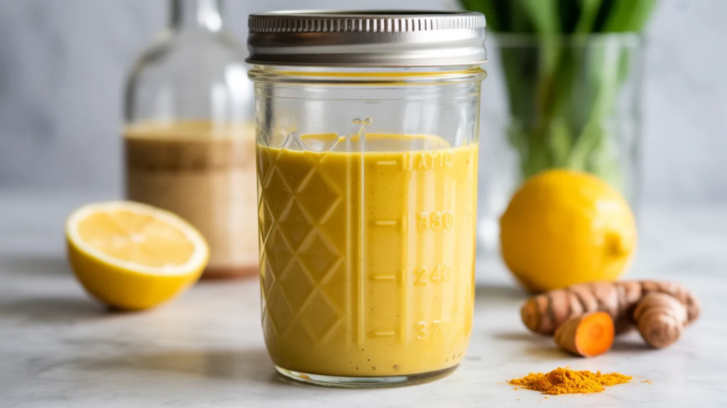 This idea is for speed: add tahini, turmeric, lemon, salt, pepper, and optional sweetener directly into a jar, then shake hard. It’s perfect for busy anti-inflammatory meals because you can make it in under 2 minutes and store it in the fridge. Use warm water to help it emulsify smoothly.