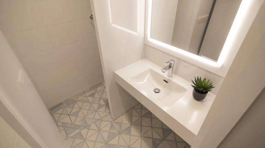 Bathrooms are tricky in rentals, but peel-and-stick floor tiles can make a huge difference with minimal commitment. Choose simple patterns and colors that won’t overwhelm the small space. Even just covering the center area or around the vanity can refresh the vibe. It makes your bathroom feel cleaner and more updated instantly.