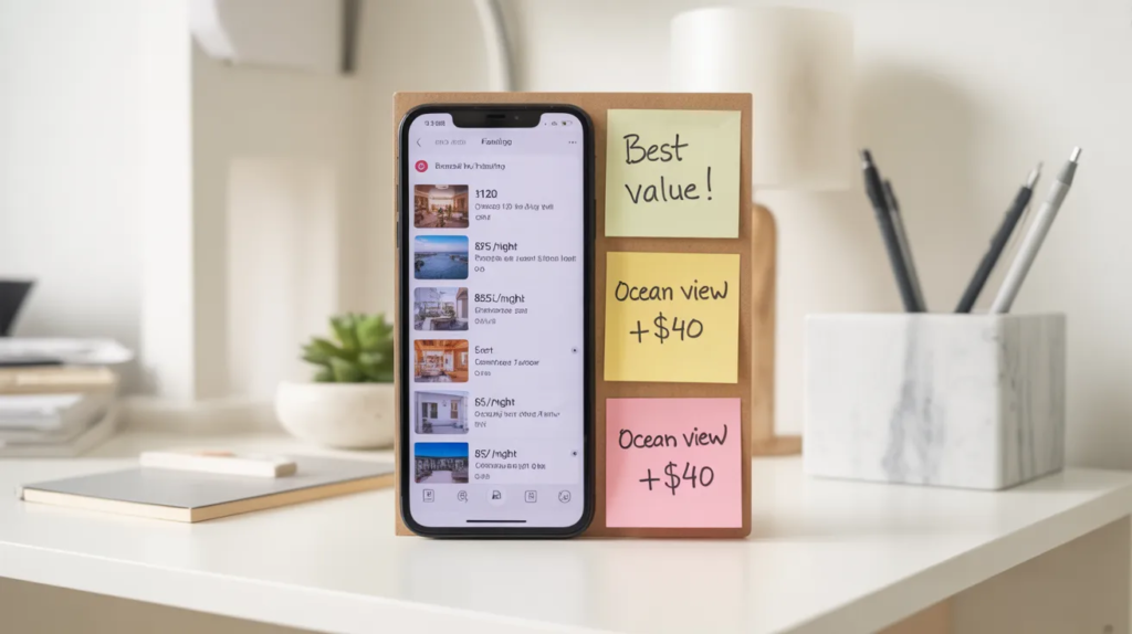 Organize your saved list by category: “best location,” “best value,” “private room backup,” and “kitchen win.” Then compare totals again before booking. If a listing disappears, you’ll still have backups. Budget travel feels less stressful when you have options ready. Favorites also help you spot the difference between a true deal and a listing that only looks cheap until fees are added.